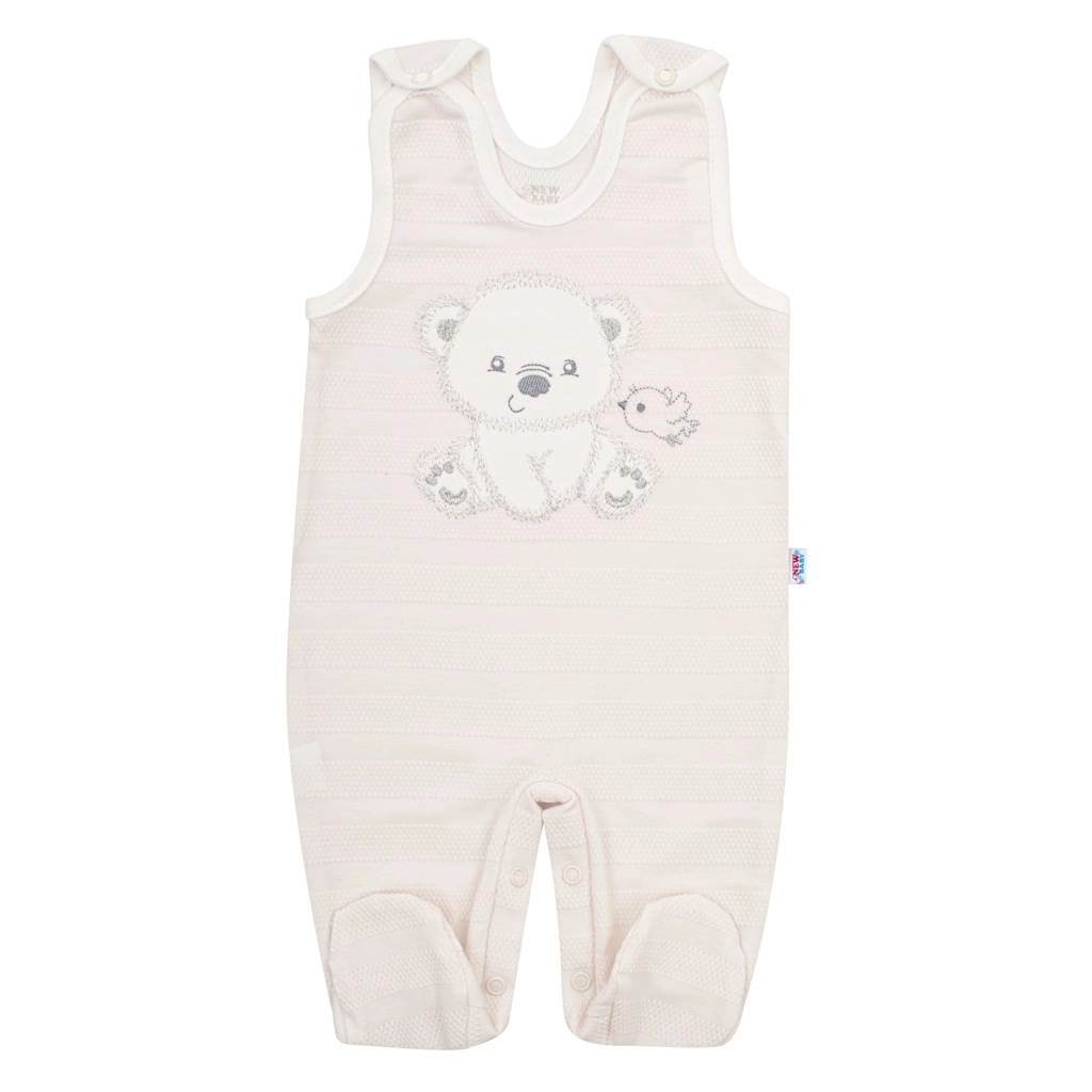 Complete 4-piece baby set by New Baby in a soft beige color. Includes a full-opening bodysuit, footed romper, snap-front jacket, and tie-on hat. Ultra-soft 100% cotton, easy snap fastening, and a cute bear-and-bird embroidery make this set ideal for the hospital bag and the first months.