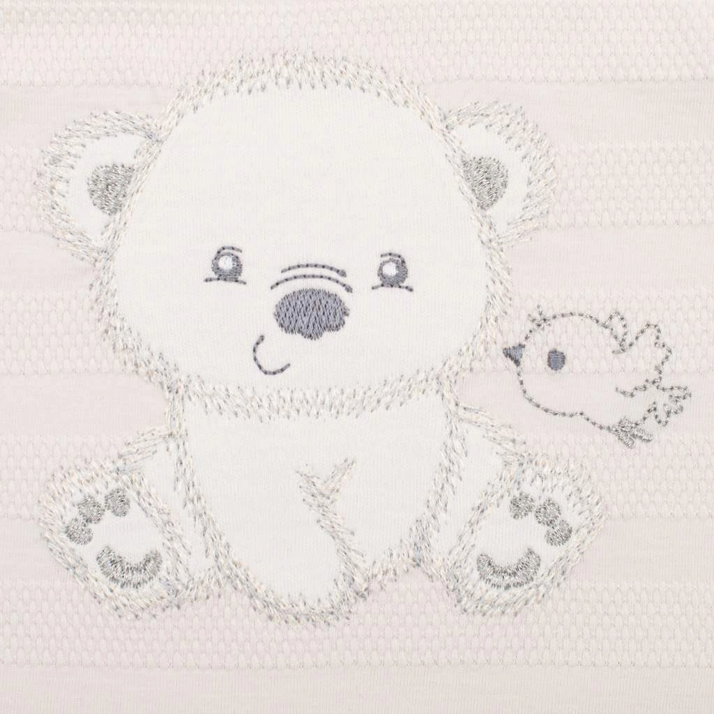 - Unisex design: soft beige with cute bear-and-bird embroidery