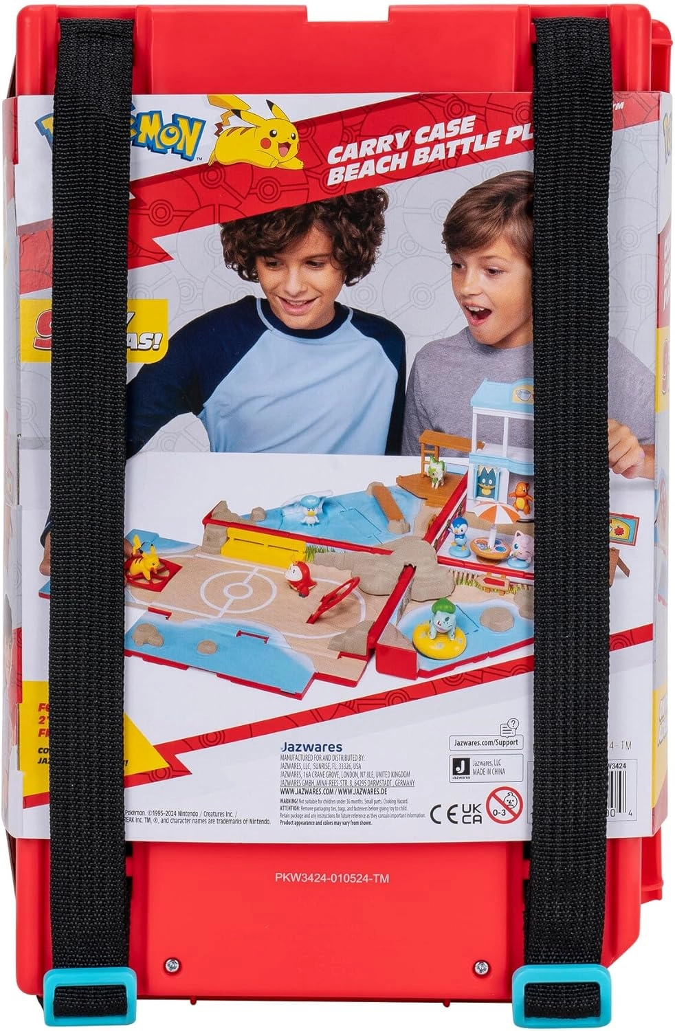 Pokémon Beach Battle portable playset by Jazwares transforms in moments from a compact backpack into a detailed beach scene with a promenade, pier, and pool. Includes a PIKACHU figure (approx. 5 cm), interactive features, and is easy to carry on trips or to friends. Perfect for creative play and fans of the POKÉMON world.