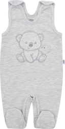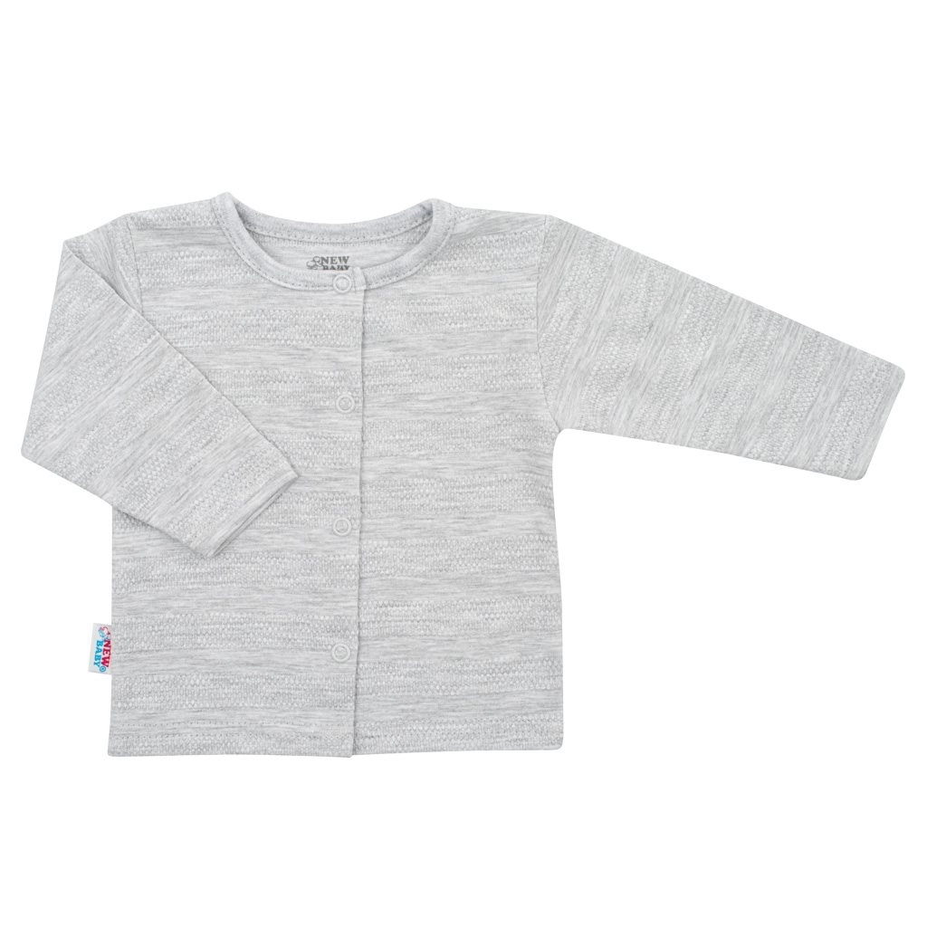 Adorable newborn set NEW BABY Sweet Bear in an elegant grey color, ideal for the hospital and the first weeks at home. It includes a wrap-over bodysuit with long sleeves, footed overalls, jacket, and a tie-on hat. The soft 100% cotton is gentle on delicate baby skin, practical snap fasteners make changing and dressing easier, and the cute embroidered bear motifs add charm to the outfit.