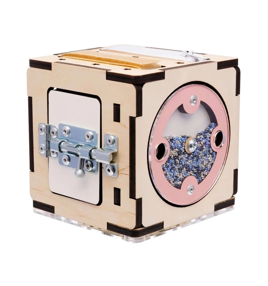This Montessori cube is made of quality birch plywood and finished with safe water-based paints. Rounded edges, sturdy construction, and well-designed mechanical elements support hand–eye coordination, patience, and curiosity. Thanks to compact dimensions of 11×11×11 cm, a child can easily take it anywhere.