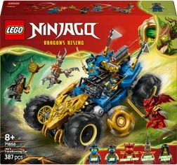 The set includes 387 pieces that develop creativity, fine motor skills, and imagination. The model can be easily rebuilt into dragon mode – the front section rotates into a dragon head with a transparent cover, the sides feature spinning shurikens, and the whole car looks dynamic thanks to its large wheels and golden accents.