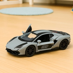 A stylish metal racing car in 1:32 scale delights both young and adult fans of fast wheels. It offers a durable metal body, opening doors for more realistic play, and a thrilling pull-back drive—just pull back, release, and race. Compact dimensions and a sporty design in grey with black details make it an ideal toy and a collector’s piece.