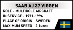 Bring a Cold War legend to life. This set faithfully captures the distinctive canard layout and delta wings of the SAAB JA 37 VIGGEN, including underwing armament and a detailed cockpit. Durable prints without stickers featuring Swedish Air Force markings give the model an authentic appearance that stands out in any collection.