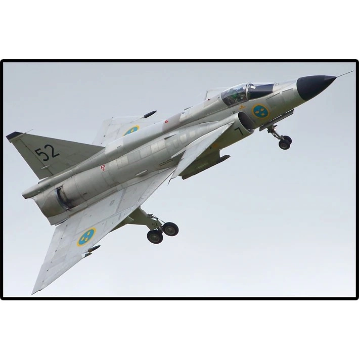 Precisely shaped delta wings, canards, and underwing armament are complemented by durable Swedish Air Force prints — no stickers used.