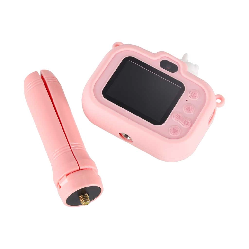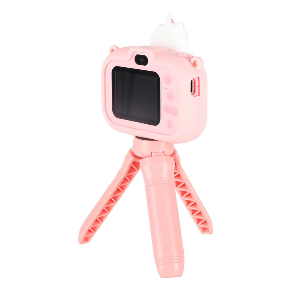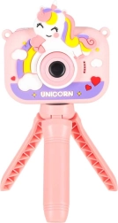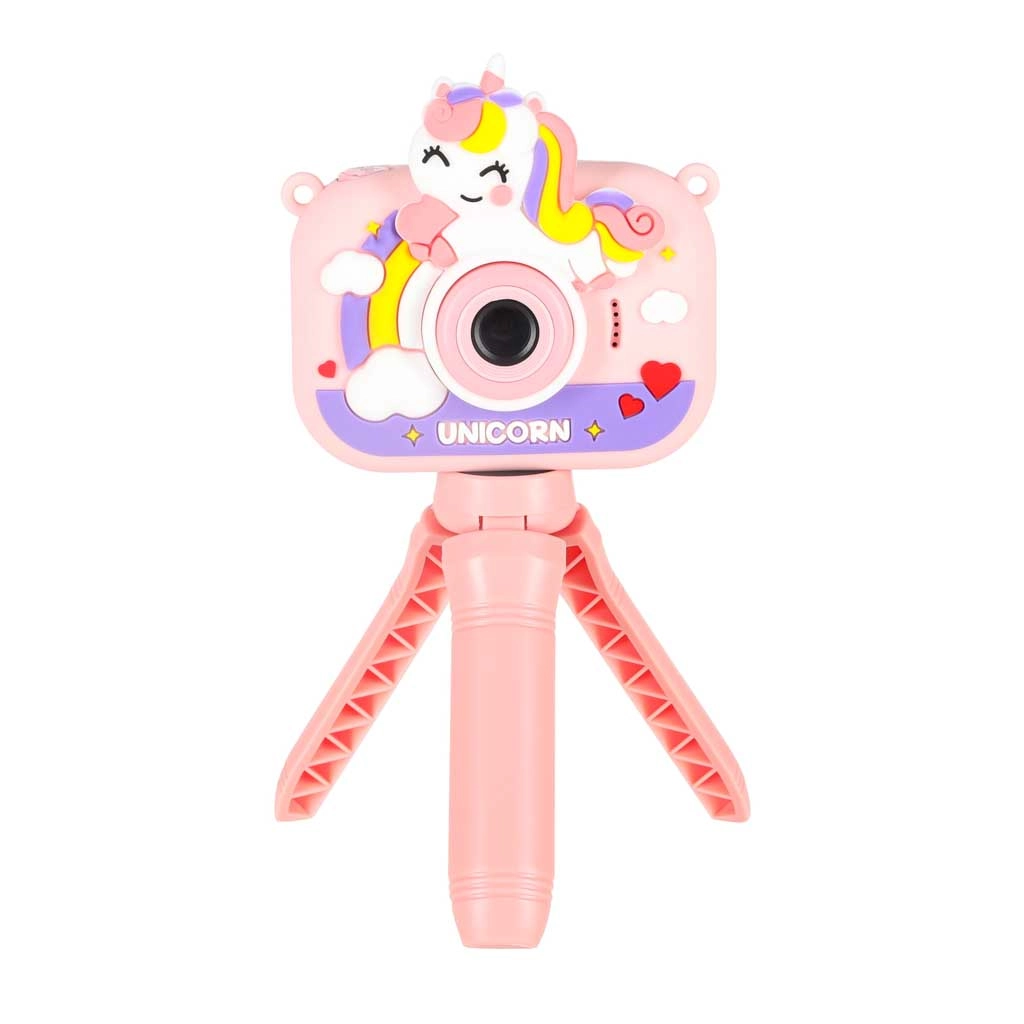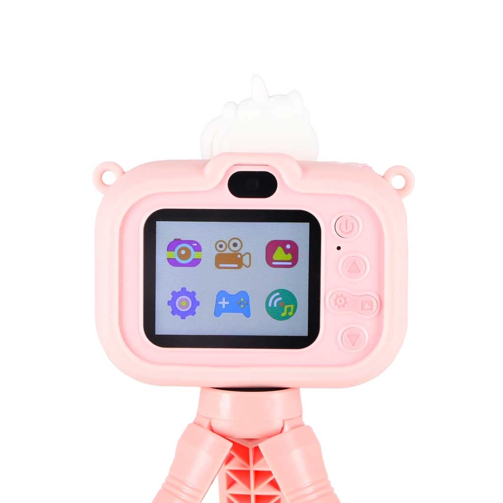 This adorable kids’ digital camera with a unicorn design and mini tripod will delight little photographers aged 3+. It offers 1080p video, a 2.0" IPS display, front and rear cameras, 5 built-in games, and quiet controls with adjustable volume. A soft silicone case protects the device, while the grip–tripod ensures stable shots indoors and outdoors.