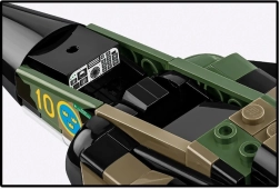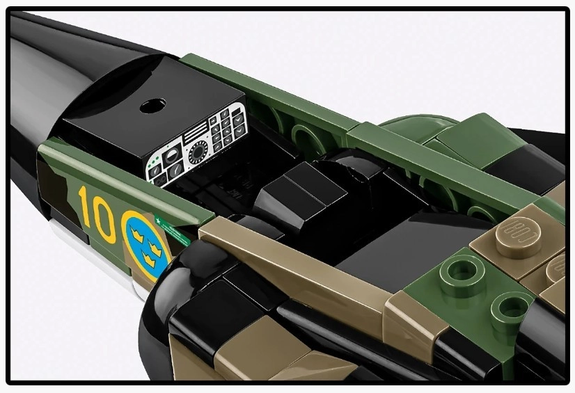 Thanks to movable control surfaces, rolling wheels, and rich equipment — including cluster munition pods Bombkapsel 90 — the model is great both for play and display. Included are a customized pilot minifigure and a stable, adjustable stand with a plaque showing the name, scale, and Swedish flag.