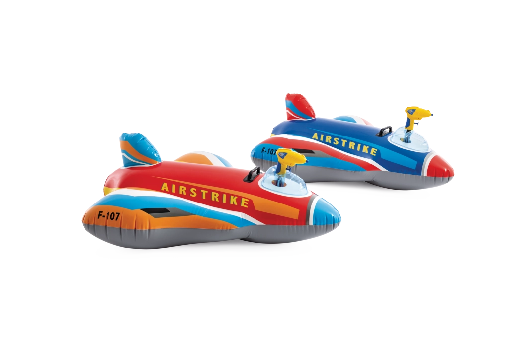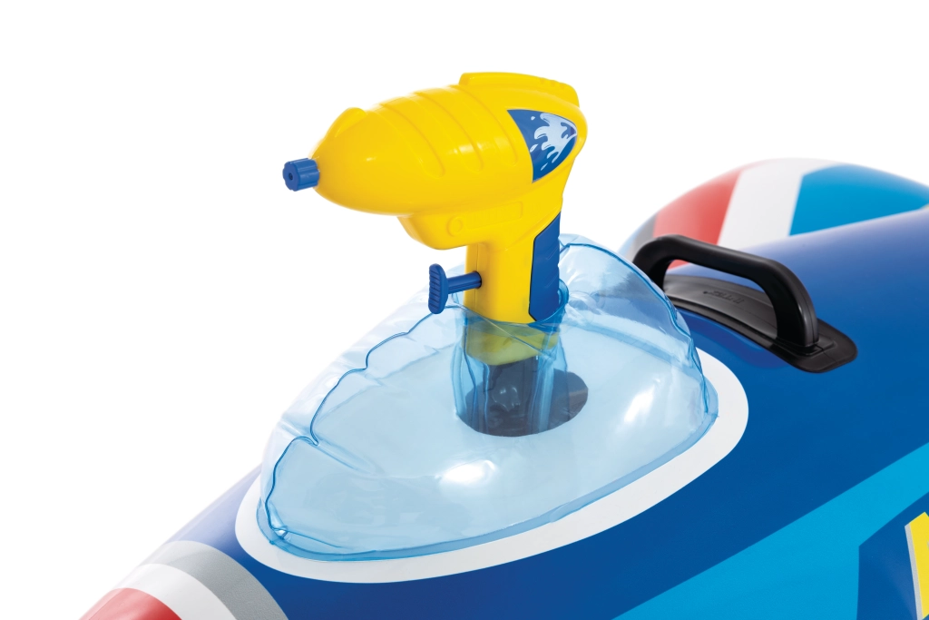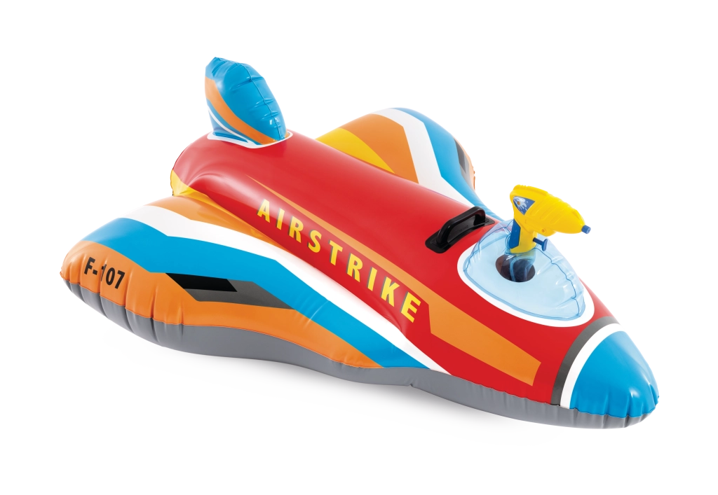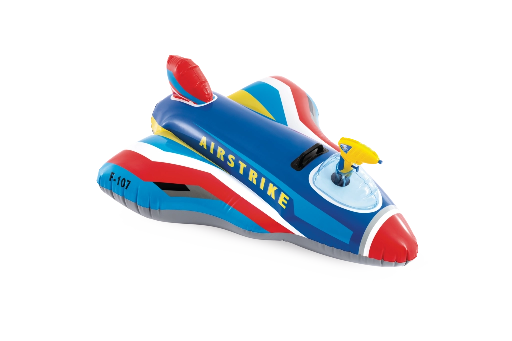 The AIRSTRIKE F-107 inflatable jet turns any pool into an action airfield. Thanks to its wide wings and rear stabilizer, it is very stable and comfortable for younger children. The integrated water gun in the cockpit allows easy water spraying and guarantees endless fun.