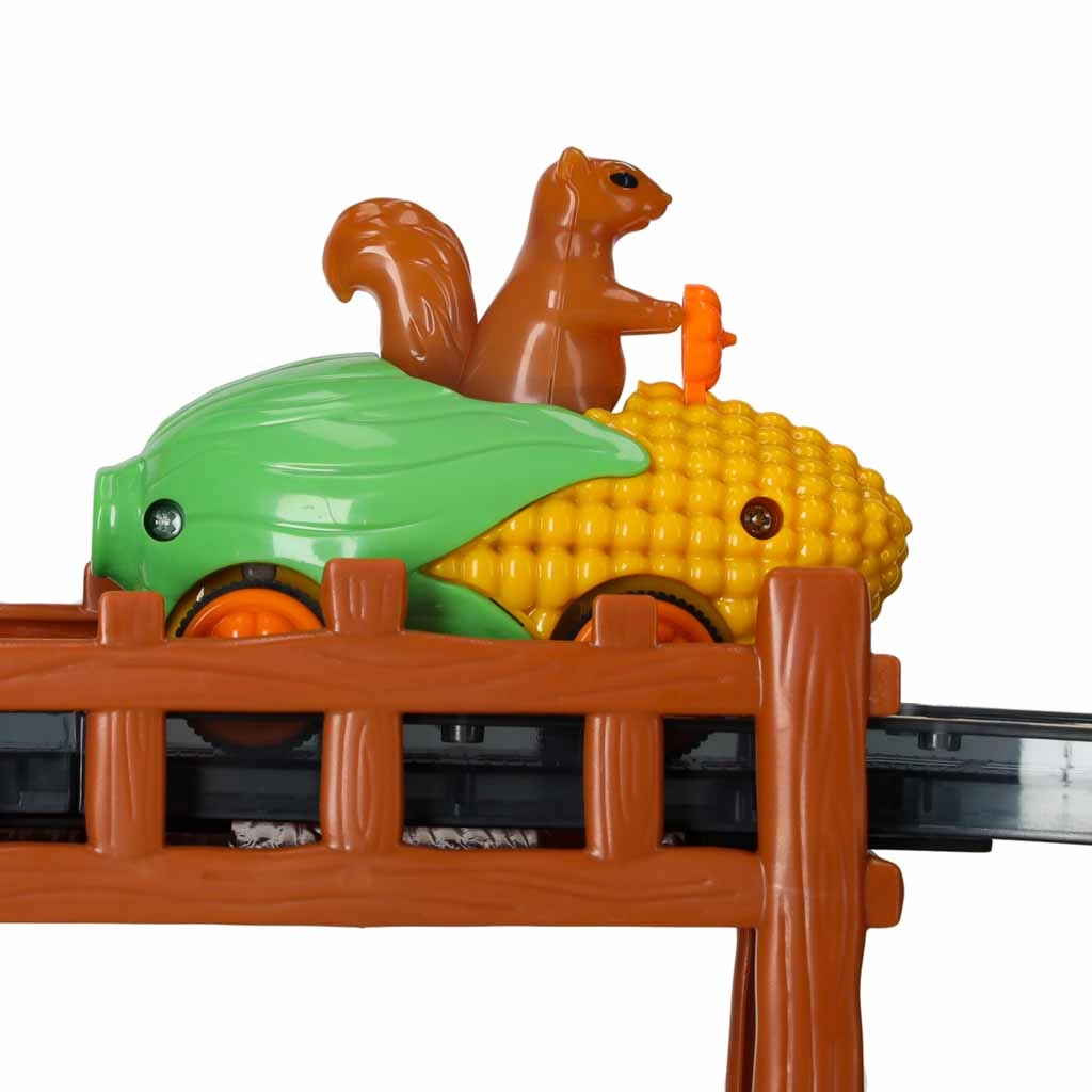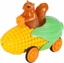 An adorable corn-shaped car with a squirrel driver brings color and light to play. Perfect motivation for little racers and evening rides.