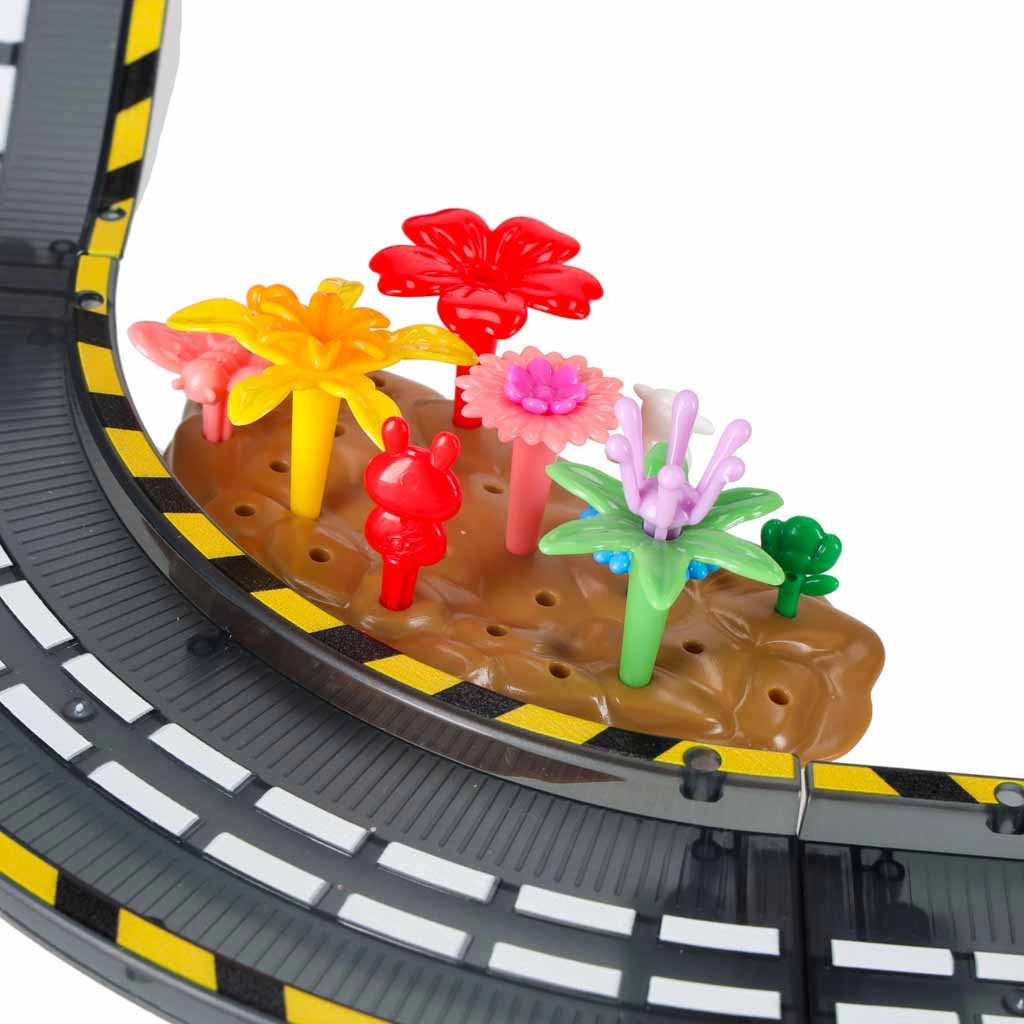 This is an educational toy that naturally develops creativity, logical thinking, and planning skills. Every new layout is a different story—kids can add flowers, trees, fences, rocks, and flags to create unique environments for racing.