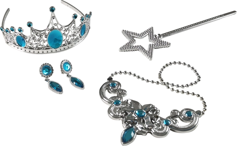 This enchanting blue set for little princesses brings everything needed for a fairytale makeover. Shiny details and blue gems add a delicate sparkle that stands out in photos and during everyday play.