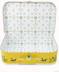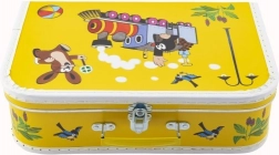 Discover the charm of a children's suitcase with a motif of the beloved Mole and his little train. This suitcase is made of quality cardboard and decorated with printed paper that is striking for its colors and playfulness. Thanks to the metal clasp and practical handle, it is easily portable, ideal for everyday use.