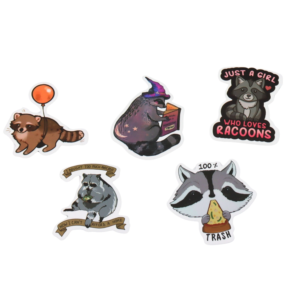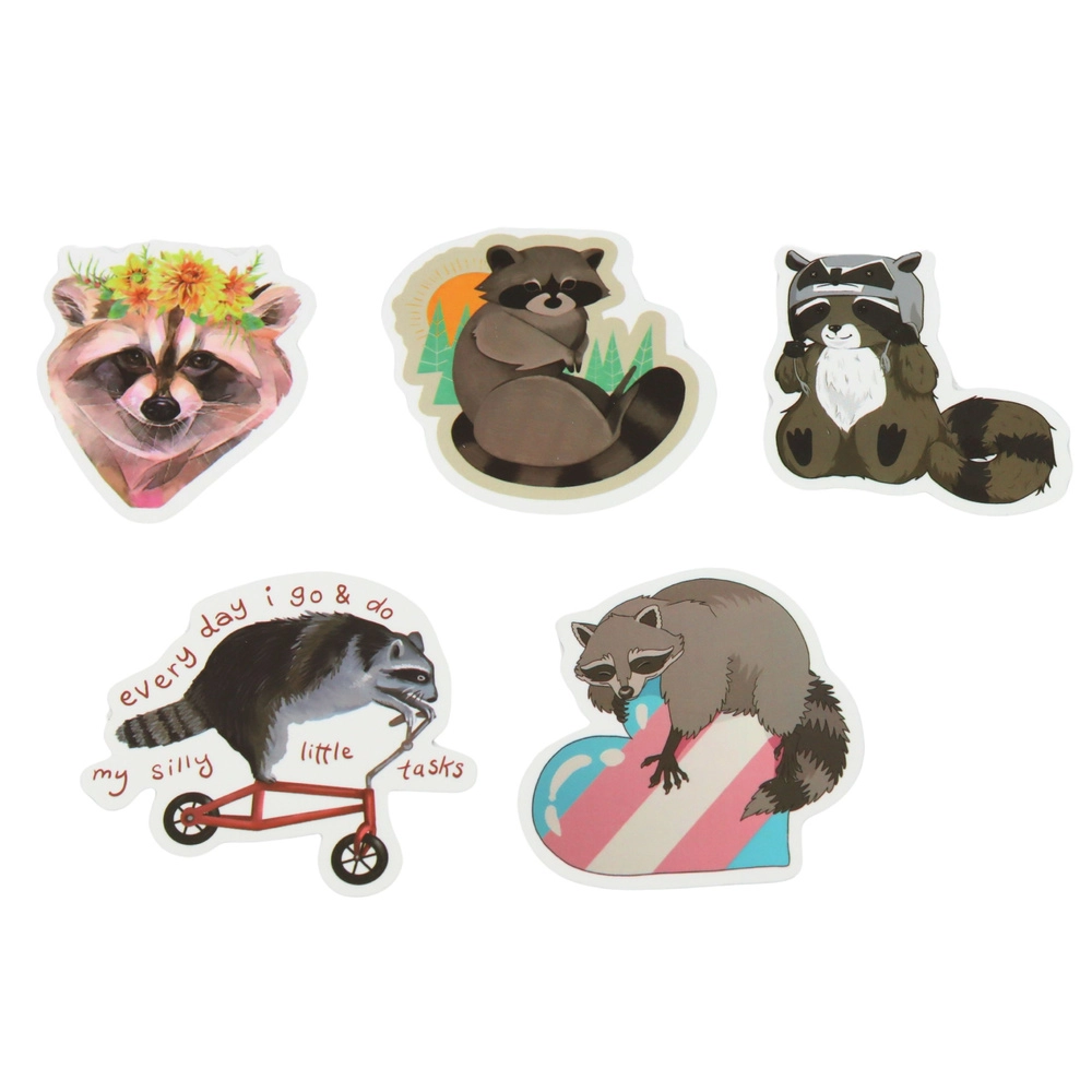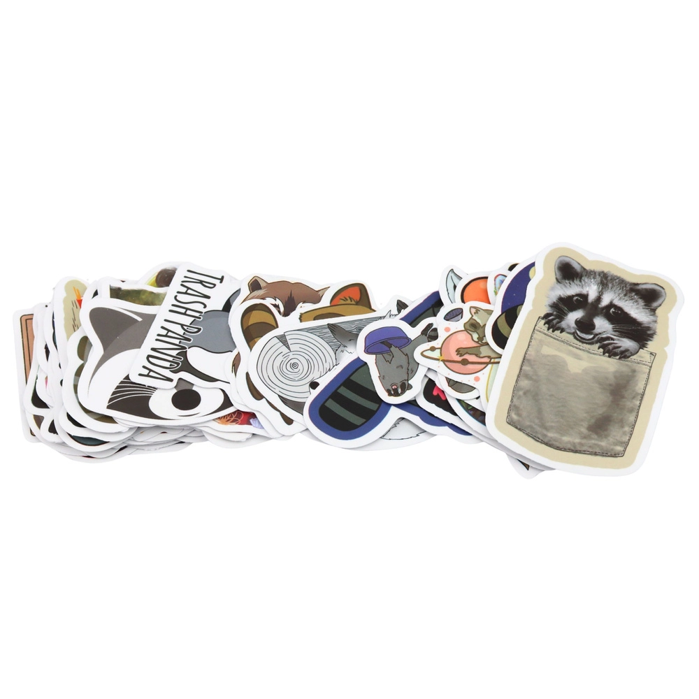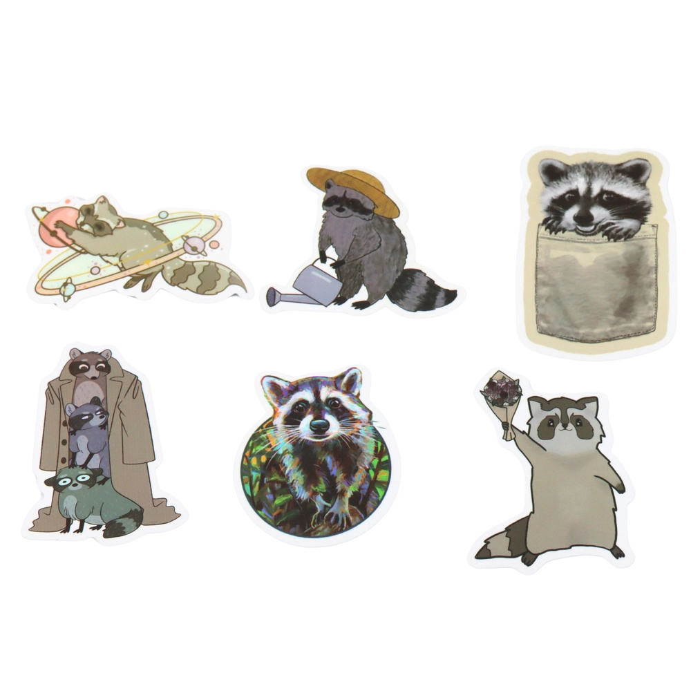 Sticker set with raccoon, various designs, 50 pcs, 7–8 cm