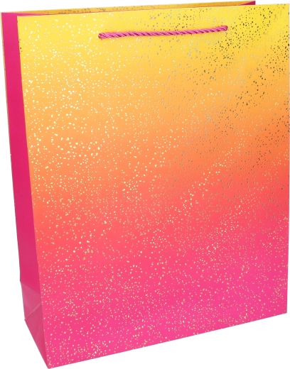 This year-round gift bag is ideal for birthdays, weddings, celebrations, and corporate gifts. Glossy paper with a gradient effect and a subtle gold confetti print looks luxurious, while the sturdy construction ensures your gift is securely packed.
