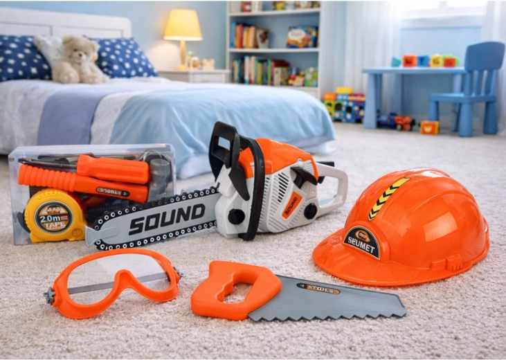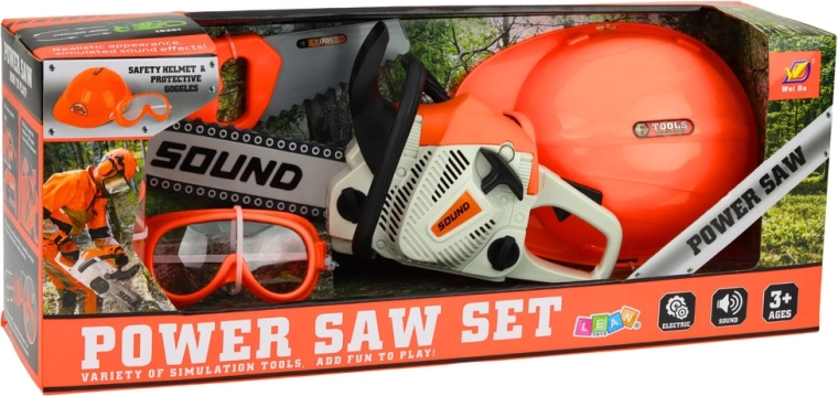 Kids’ tool set with chainsaw, helmet and goggles with sounds
