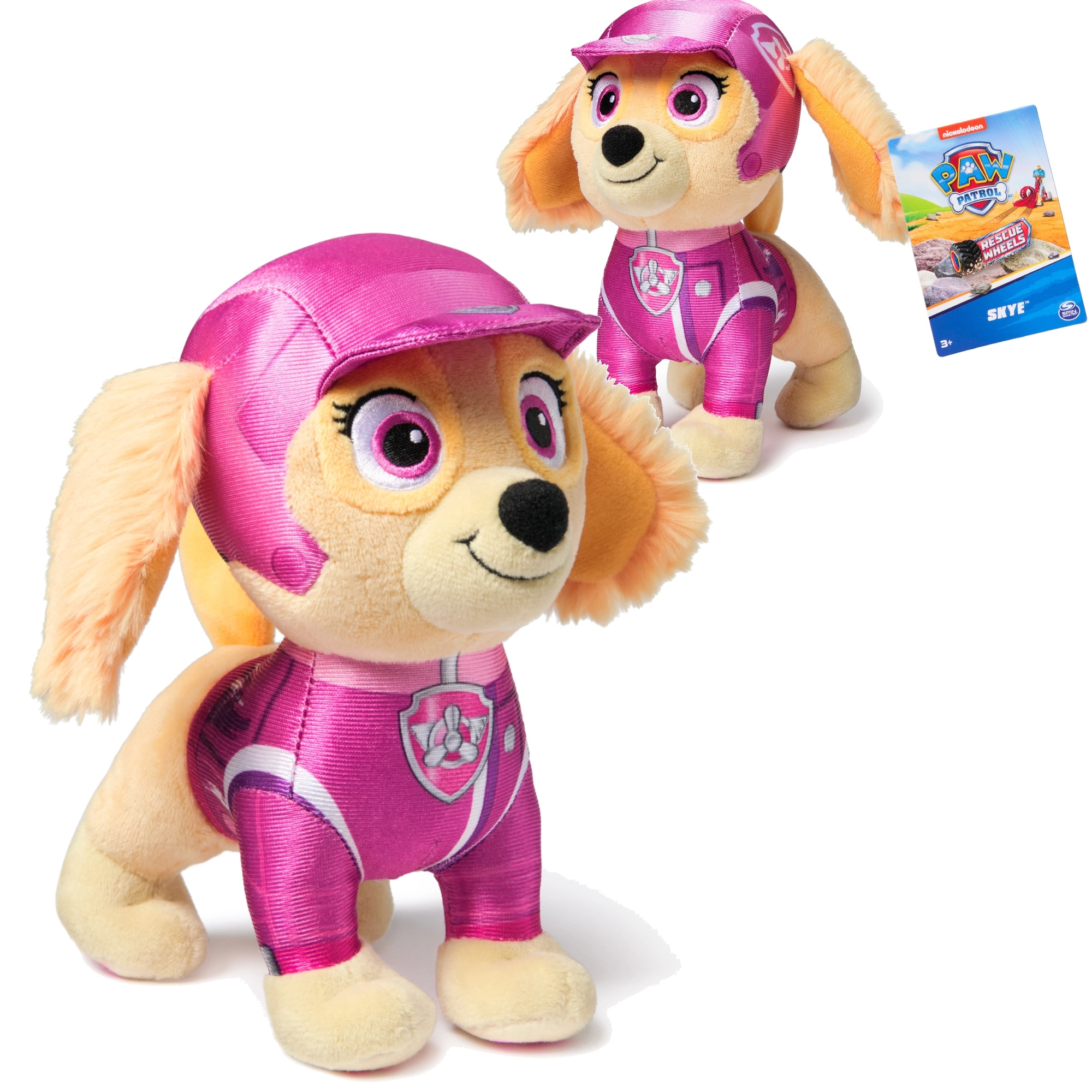 Adorable Skye from PAW Patrol plush from the Rescue Wheels edition will delight every child. She has a super soft, cuddly plush body, a detailed pilot outfit with a pink helmet, and a compact height of 17.5 cm – ideal for cuddling, role play, and travel.
