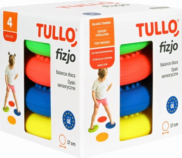 Discover a fun way to support balance, coordination, and sensory perception for both children and adults. This set of four colorful discs with pronounced texture offers a non-slip surface, a pleasant foot massage, and effective stability training. Made from safe materials — free of phthalates, BPA, and heavy metals — ideal for home workouts, preschools, and physiotherapy.