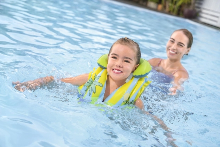 The vest is made from high-quality, durable vinyl for a long lifespan. Practical valves allow quick inflation and deflation, so it’s ready to use in moments and easy to store after swimming. Ideal as a swim aid for lessons and water play (not a life jacket).