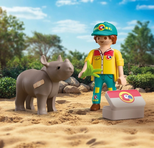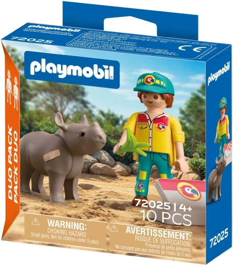 Step into the PLAYMOBIL world and help an injured rhino get back on its feet. This set from the Duo Pack range features two detailed figures and a set of practical accessories, letting kids act out countless zoo stories from Playmo-City. Realistic tools and equipment foster imagination and a sense of animal care.