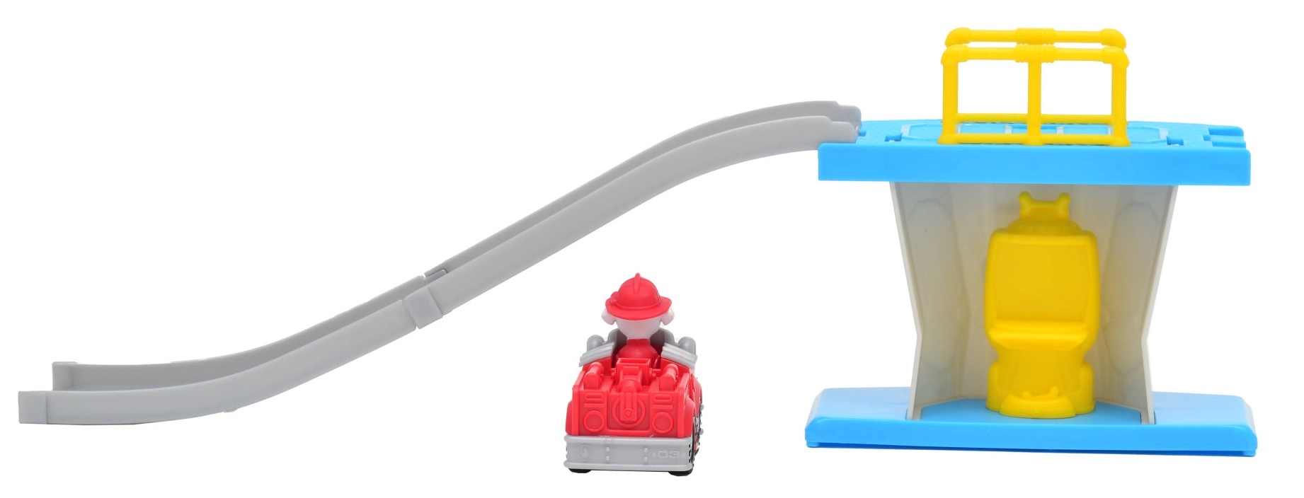 The tower with track lets Marshall’s vehicle glide smoothly down – ideal for dynamic rescue scenarios and repeat play.