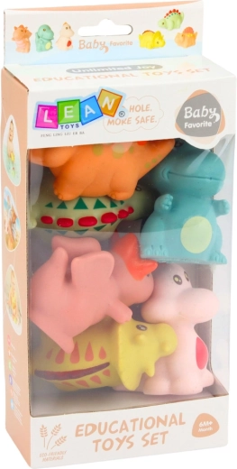 Discover fun in and out of the water with a set of super soft rubber dinosaurs in pastel colors. Six adorable figures made of soft, safe rubber are easy to grasp, squeeze, and float in the tub. They support children’s fine motor skills, sensory exploration, and imagination, turning every bath into a little prehistoric adventure.