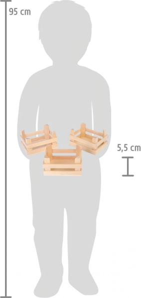 Looking for a stylish and practical accessory for your children's games? The set of three wooden crates from Small Foot is the perfect choice! These crates can be used in role-play games as vendors, but are also great for maintaining order in a child’s room or outdoor play in the garden. Dimensions 10x8x5.5 cm provide enough space for all essentials.