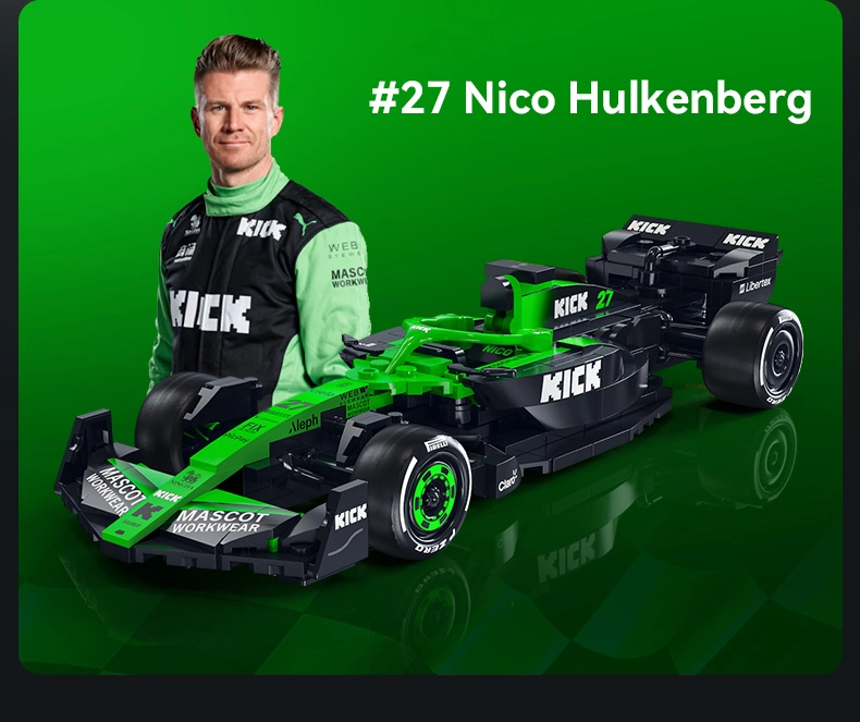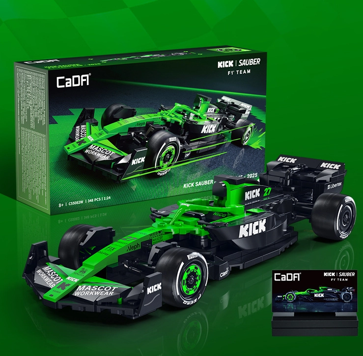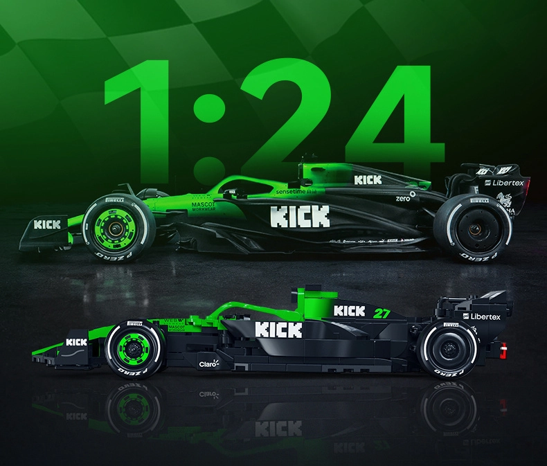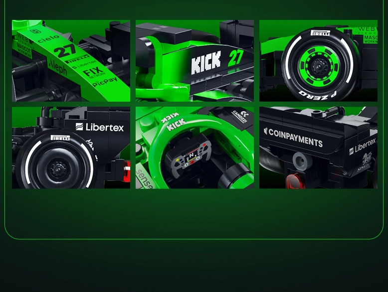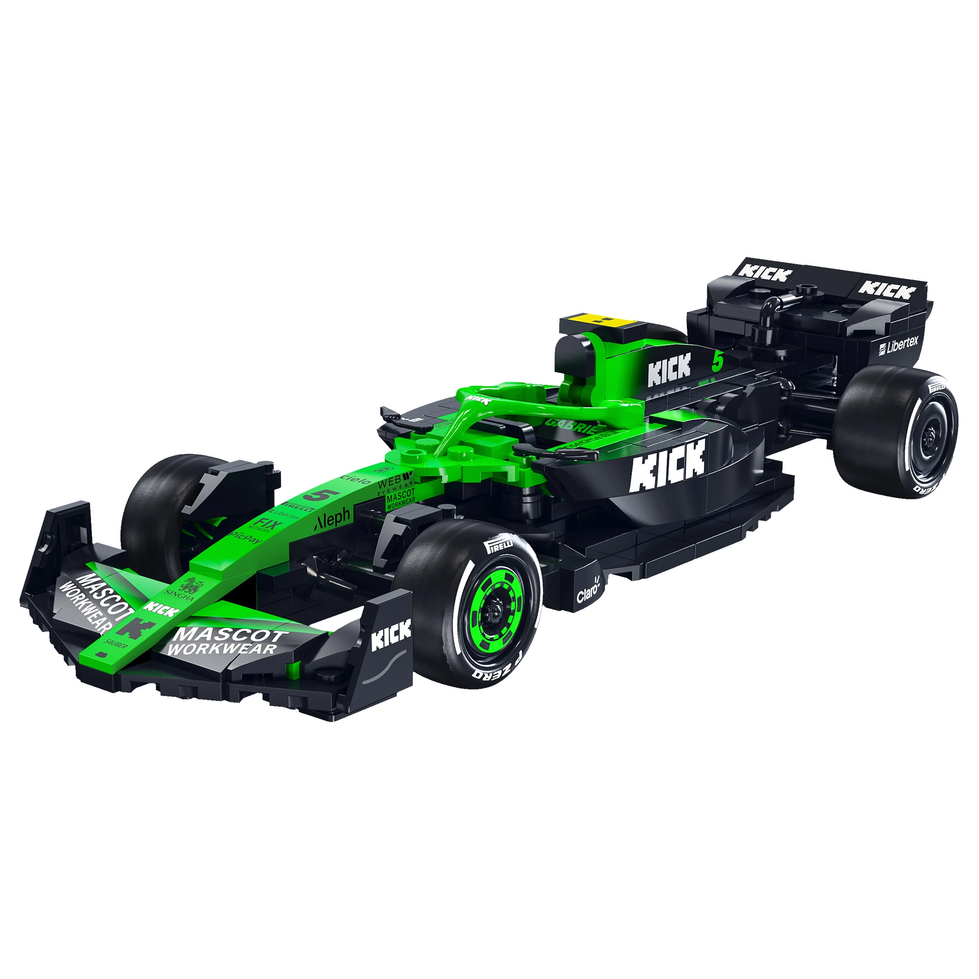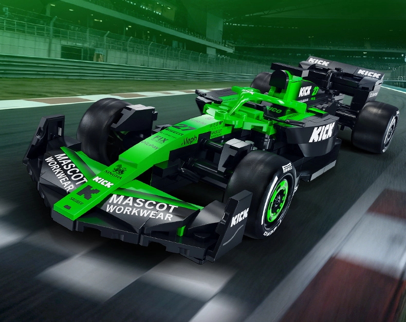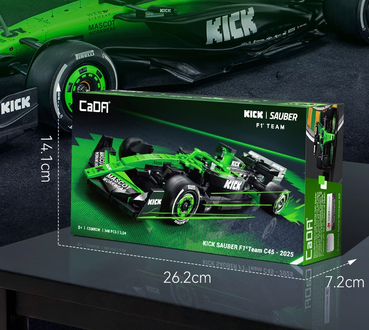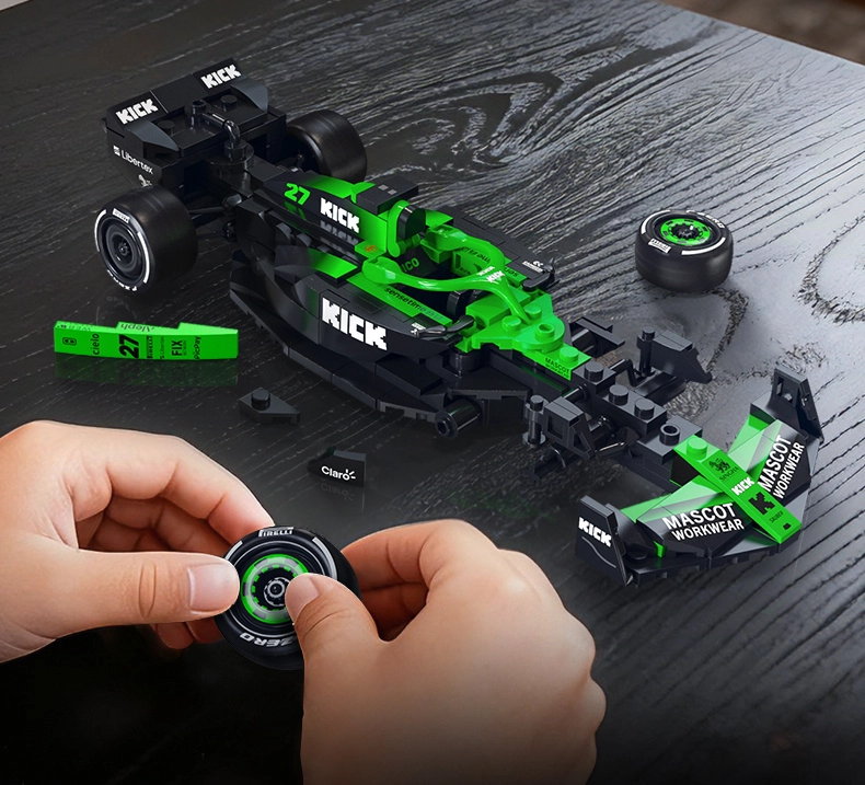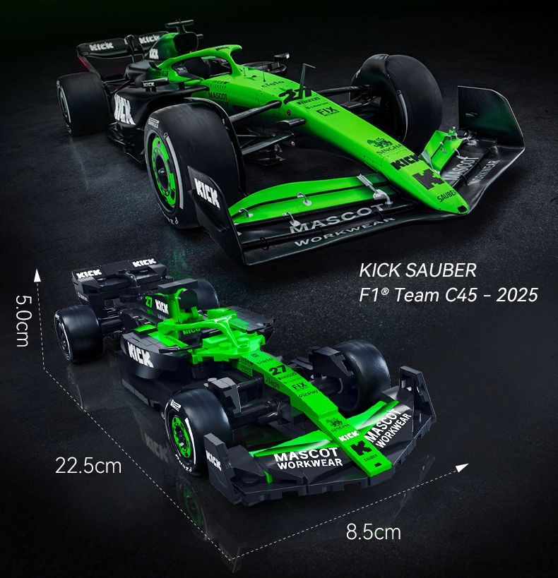 Enjoy a precise build and racing atmosphere with the KICK SAUBER F1 C45 model. The sleek black-and-green livery, aerodynamic wings, and authentic prints create an impressive replica of a modern Formula car. Thanks to the functional wheels, the model moves easily on flat surfaces, making it perfect for both play and display.