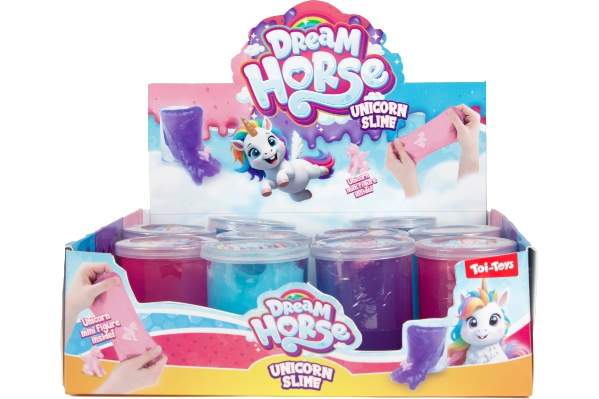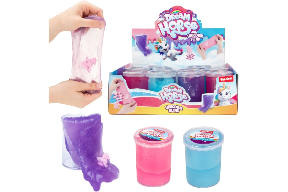 The Toi-Toys Unicorn Slime brings children hours of creative fun. Inside the transparent, glossy slime is a small unicorn figure waiting to be discovered. Thanks to its pleasant, elastic consistency, the slime is ideal for squeezing, stretching, and kneading—it helps release tension and supports sensory perception.