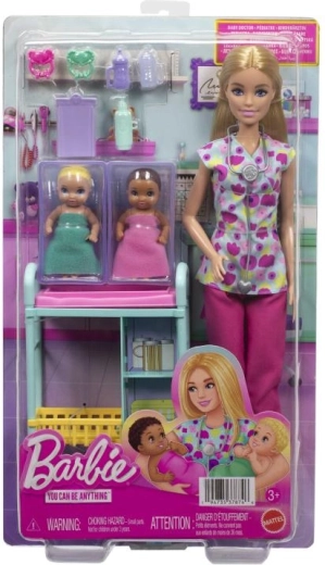 The Barbie doll as a pediatrician gives children the chance to try the role of a doctor who cares for babies and young patients. With work accessories and authentic details, kids can create their own clinic stories and practice social skills and imagination.