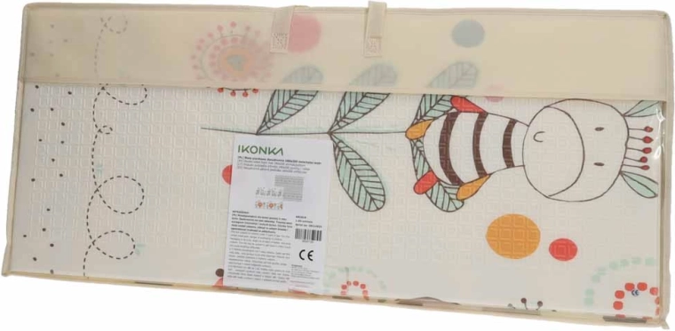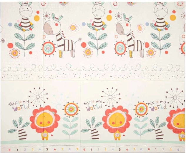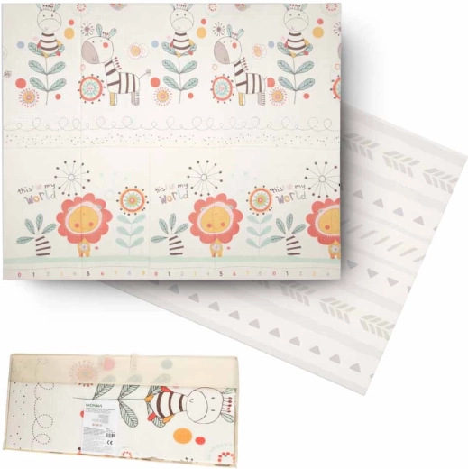 A practical, safe, and stylish foam mat for children measuring 180 × 200 cm featuring a double-sided design with animal motifs, a folding construction, and an anti-slip texture for comfortable and safe play. Thanks to the XPE material, the mat is soft, cushions falls, has anti-allergenic properties, and is easy to clean.