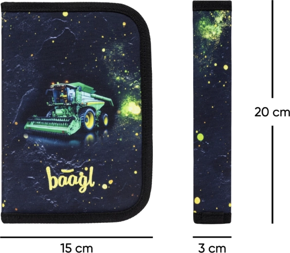 The Baagl school pencil case with an attractive tractor motif is an ideal choice for students who seek durable and well-organized storage for writing supplies. The single-compartment design with two flaps and the quality YKK zipper ensure easy and reliable everyday use.