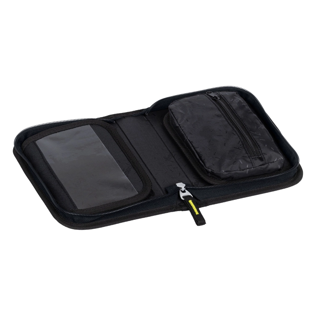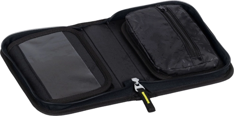 Small pocket, timetable window, sturdy elastic loops