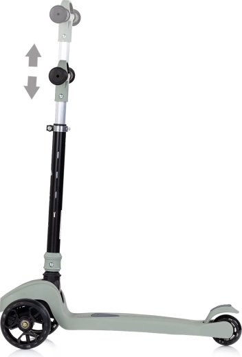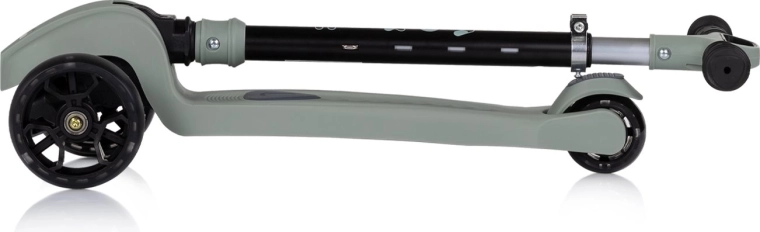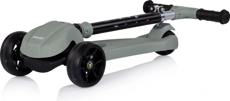 Give kids a fun and safe ride with the CHIPOLINO Moxie scooter in a stylish green color. Thanks to its three wheels, it’s stable, featuring a lightweight aluminum frame, height-adjustable T-shaped handlebar, and a folding mechanism for easy carrying. LED lights in the wheels and music and light effects add extra joy to every ride, while the rear foot brake ensures quick and intuitive stopping.