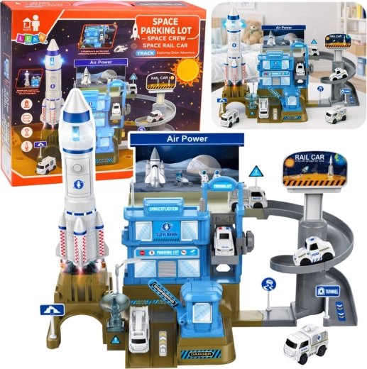 - Space station with rocket and multi-level parking