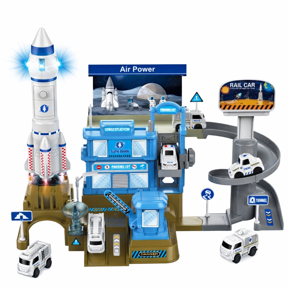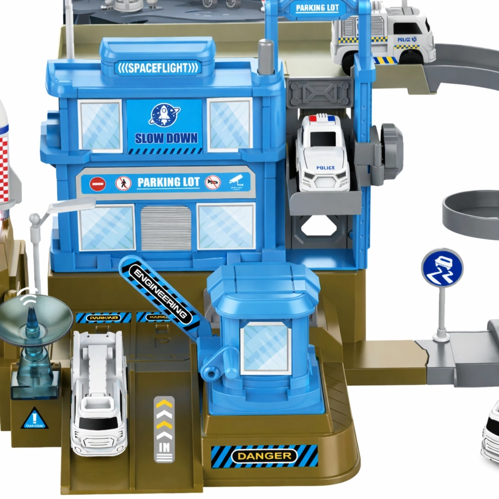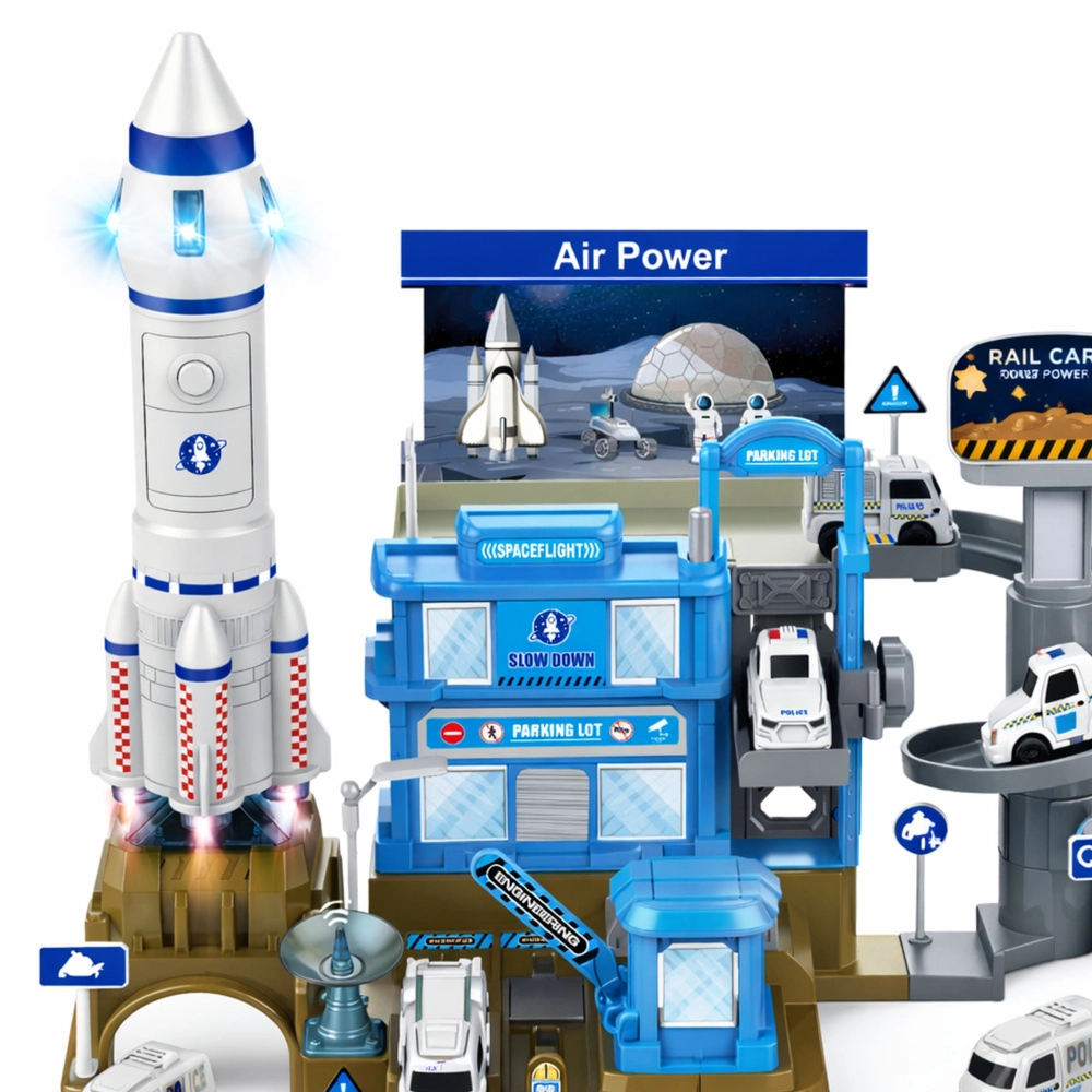 Discover endless fun with the children's space station with rocket – a multi-storey set for little astronauts. It includes ramps, an elevator, parking areas, and a launch pad. The battery-powered rocket offers light and sound effects that make the launch into space highly realistic. Durable design, rich accessories, and development of creativity and motor skills during play.