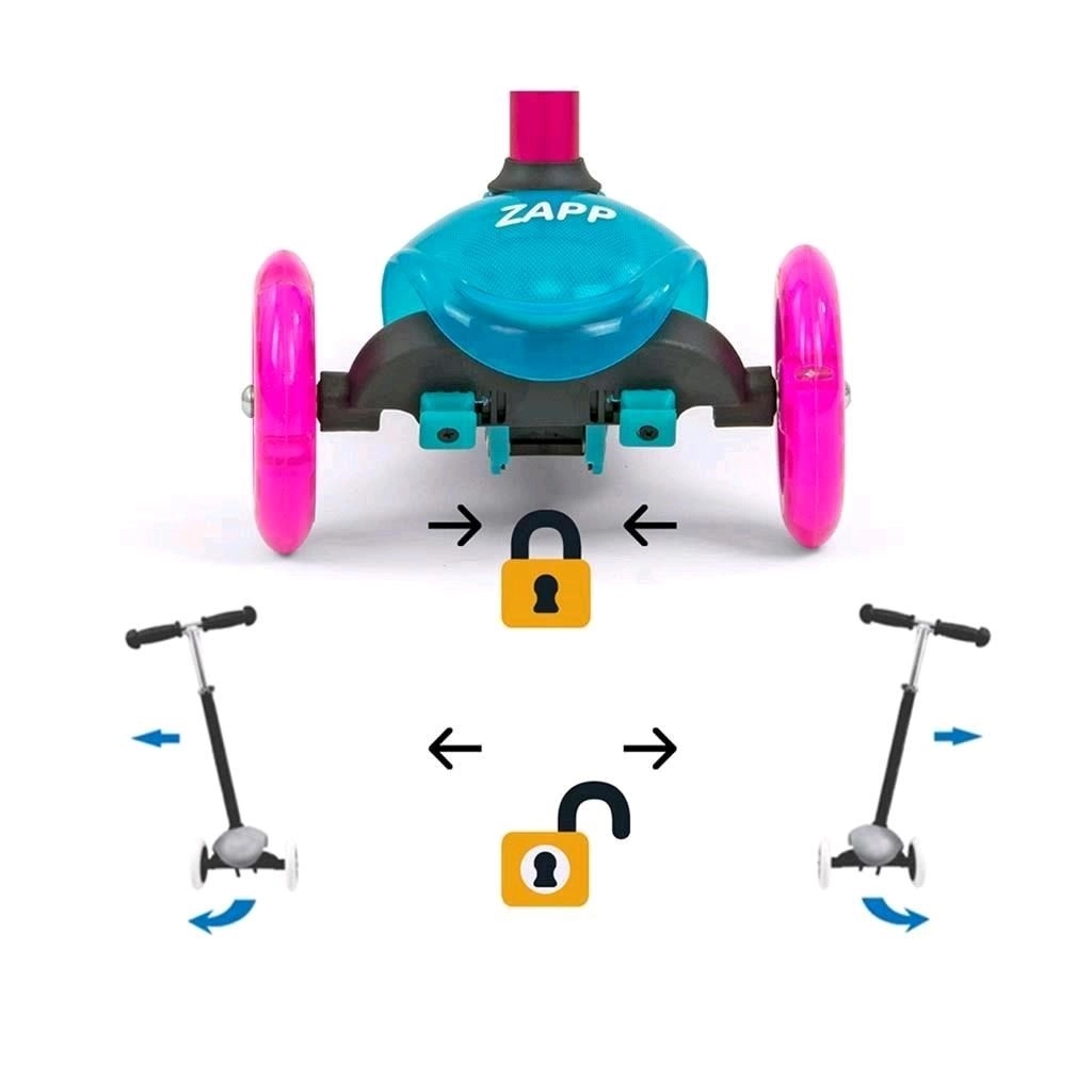 Looking for a first scooter for your child that combines stability, safety, and fun? The MILLY MALLY Zapp mint model has two large front wheels and one rear wheel for confidence in turns, light-up front wheels for riding joy, and adjustable handlebars so the scooter grows with your child.