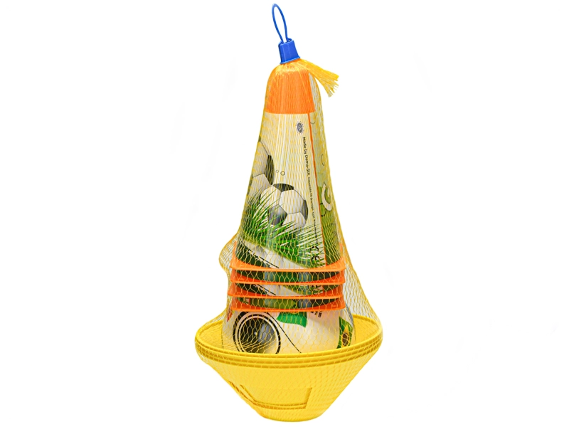 The package includes 4 cones (18 cm), markers and a ball (12 cm) – everything for fun dribbling, slalom and accuracy drills.