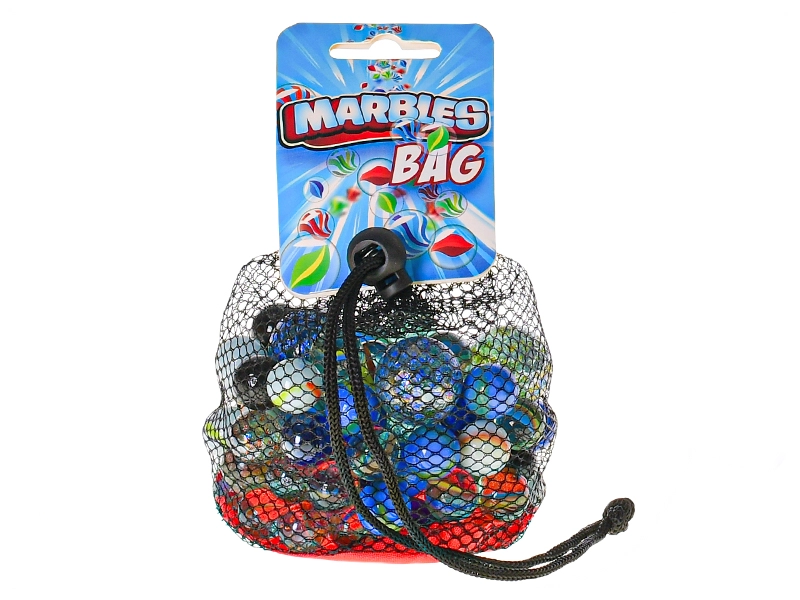 A durable net with a cord and toggle keeps the marbles safely together and makes carrying and storage easy.