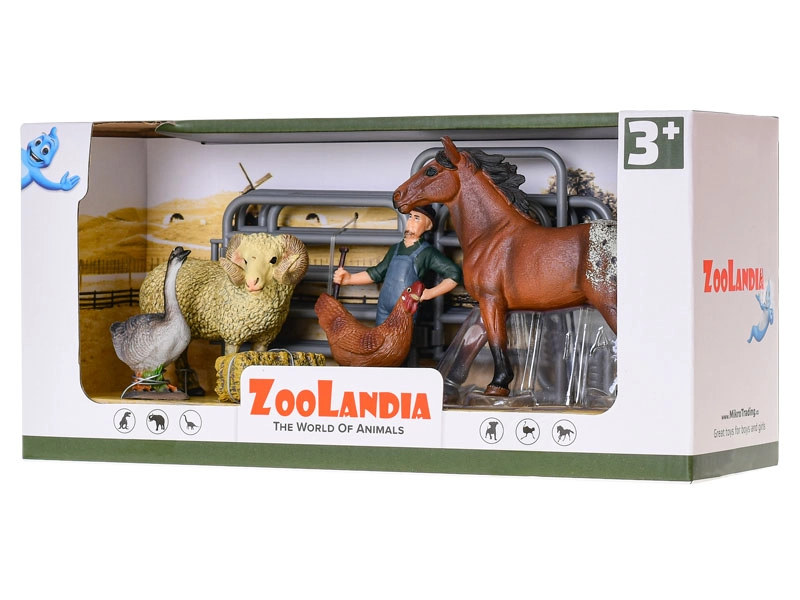 Discover the fun world of the farm with the Zoolandia plastic figurine set. This set offers finely detailed animals and farmer figures that let children create their own stories. The toy is safe and durable and suitable for children aged 3 and up. Thanks to the different variants, kids can fully develop their imagination and creativity.