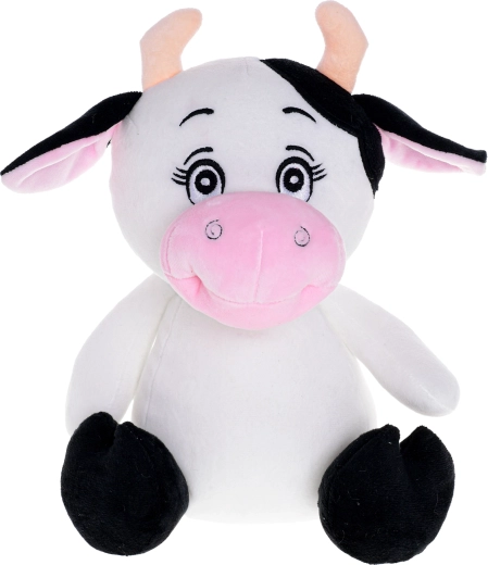 This plush cow delights with its gentle touch, cute expression, and quality craftsmanship. Thanks to embroidered eyes without plastic parts, it is safe from birth and gives children a feeling of comfort and security. The seated construction makes stable placement easy on a nightstand, shelf, or in the crib.