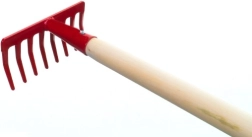 Lightweight children's rake with an 80 cm wooden handle turns garden work into fun. It supports the development of motor skills, motivates time in the fresh air, and builds a positive relationship with nature.