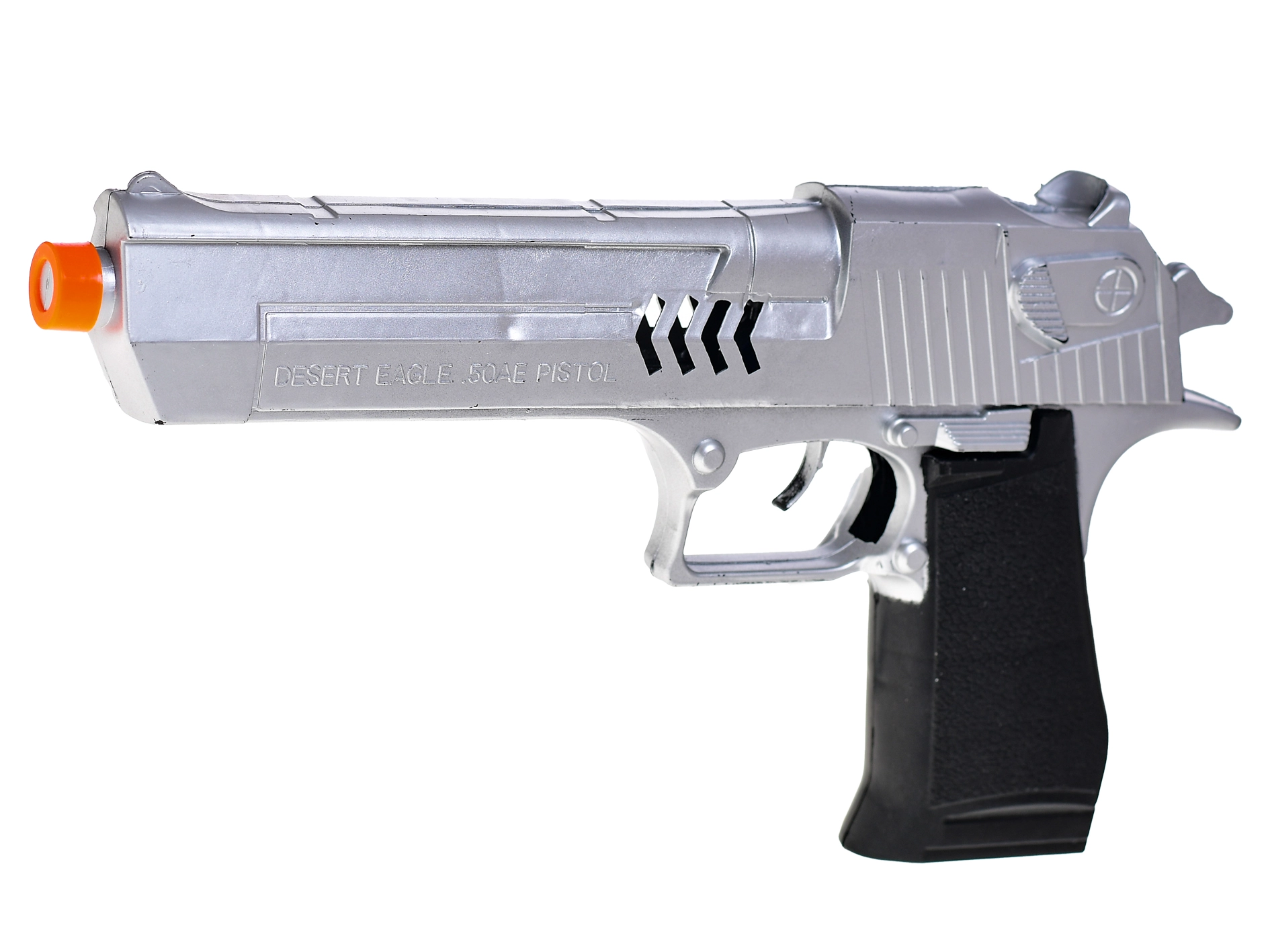 This spark-effect flywheel toy gun, 26 cm long, is an ideal toy for little adventurers. When the trigger is pressed, it creates a spark effect that adds authenticity and even more fun to the game. Thanks to its quality plastic construction, it is light, durable, and comfortable for kids to hold.