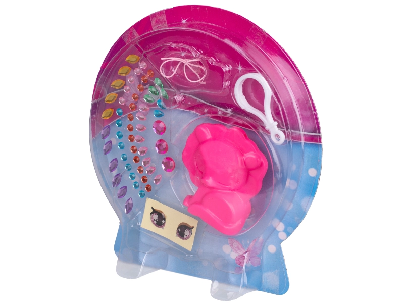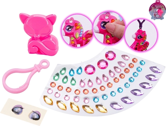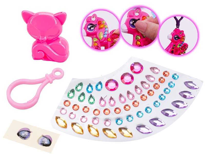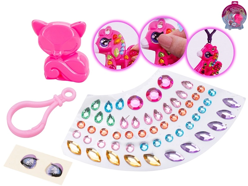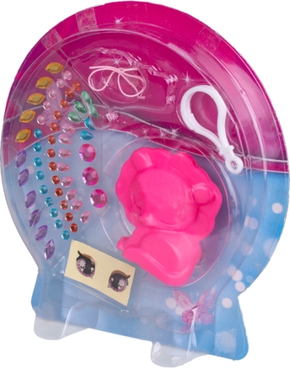 This glamour set is perfect for little creators who love crafting and personalizing accessories. The box includes everything you need — a plastic animal (6 cm), a handy carabiner for attaching, and colorful self-adhesive gems including eye stickers. Decorating is easy and fun, and the result is an original keychain to match your taste.