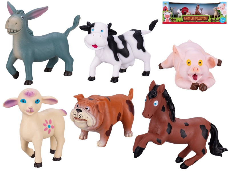 The Farm Animals Set brings children their favorite pets and farm animals right into their room. It includes a horse, cow, ram, dog, pig, and donkey—each animal is made of durable plastic and measures 7–10 cm for a comfortable grip in small hands.