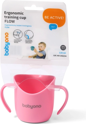 BabyOno ergonomic training cup with handles 120 ml, pink (from 6 months)