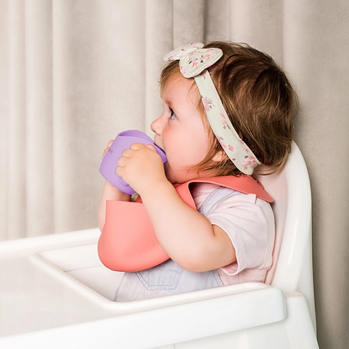 Thanks to its lightweight and durable construction free of BPA, phthalates, and PVC, the cup is safe for everyday use. Easy maintenance, including dishwasher compatibility, makes life easier for parents. The 120 ml capacity is ideal for first attempts at independent drinking and fine motor skill training.