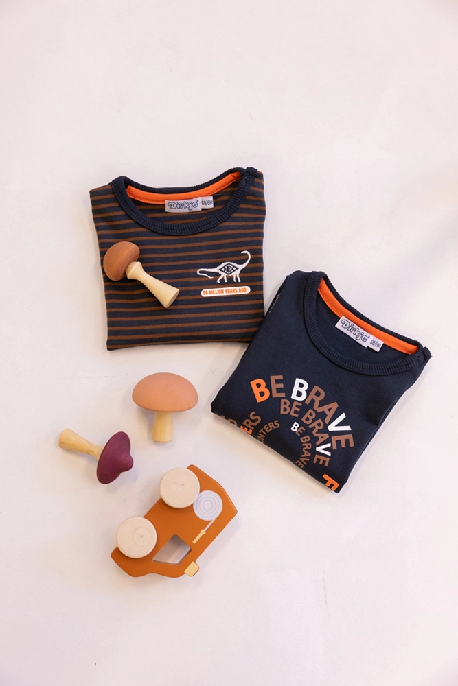The popular Dutch brand DIRKJE brings a boys' long-sleeve T-shirt in a modern striped design. Thanks to its soft fabric and careful stitching, it is ideal for all-day wear to preschool, on trips, and at home.