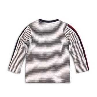 A stylish kids’ long-sleeve T-shirt by DIRKJE in a white–navy stripe, offering comfortable everyday wear, a soft cotton-blend fabric, and a practical chest pocket. Thanks to the long sleeves and soft knit, it’s ideal for all-day play and preschool.