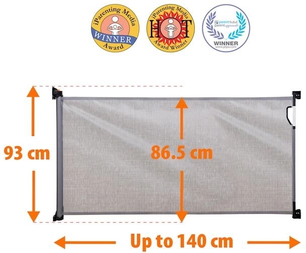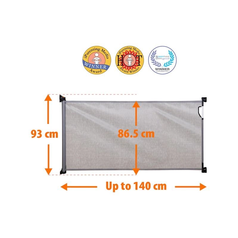 DREAMBABY retractable safety gate 0–140 cm, grey