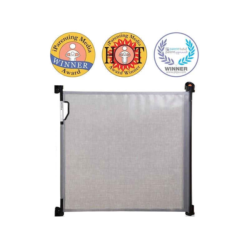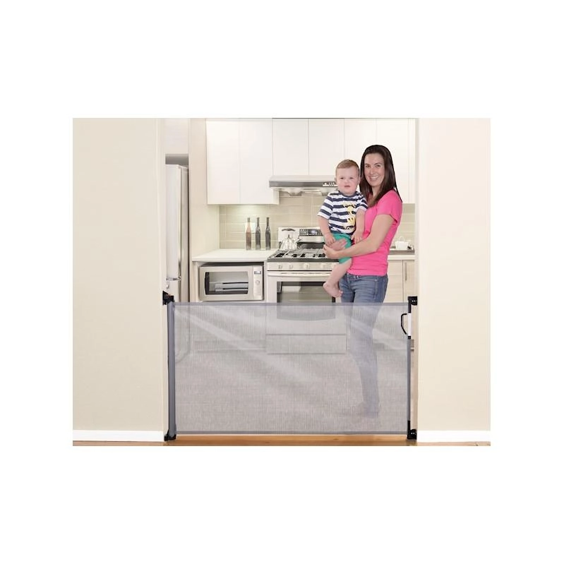The practical DREAMBABY retractable gate protects children and pets in doorways and at stairs up to a width of 140 cm. Thanks to easy one-hand operation, a robust transparent mesh, and a threshold-free, trip-free design, it’s ideal for everyday use both indoors and outdoors.